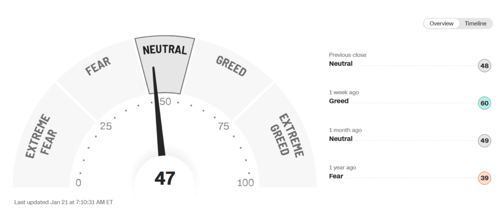 January 21, 2026, ‘Fear & Greed Index.’ Source: CNN