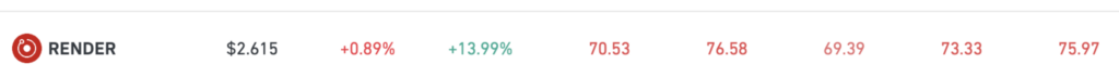 Similarly, Render (RENDER), trading at $2.615, has demonstrated stronger recent gains, up 13.99% over the past 24 hours, reflecting heightened interest in the token.