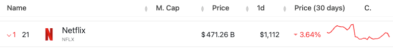 Netflix stock price and market cap. Source: Companies Market Cap