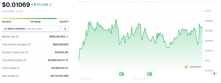 Canton Network, trading around $0.1025, has recently gained momentum after posting a 12% price increase, driven largely by institutional interest. The project’s backing by major traditional-finance players, including Goldman Sachs and Citadel Securities, gives CC a rare credibility advantage among low-priced tokens.