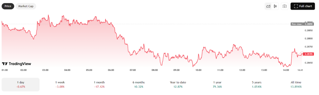 As of November 2025, TRX trades around $0.28 with small day-to-day shifts. Traders see strong support near $0.25 and resistance close to $0.33. If buying pressure builds, a move toward $0.35 looks possible in the short term.