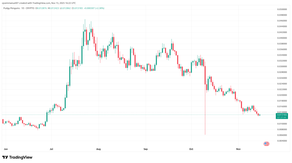 The token trades near a key resistance zone at $0.017 after weeks of consolidation. A clean breakout would open the door to $0.02 and beyond. With a DreamWorks collaboration, Times Square billboards, and major Web3 funding behind it, PENGU is shaping up as one of the stronger meme-adjacent plays entering the next cycle.