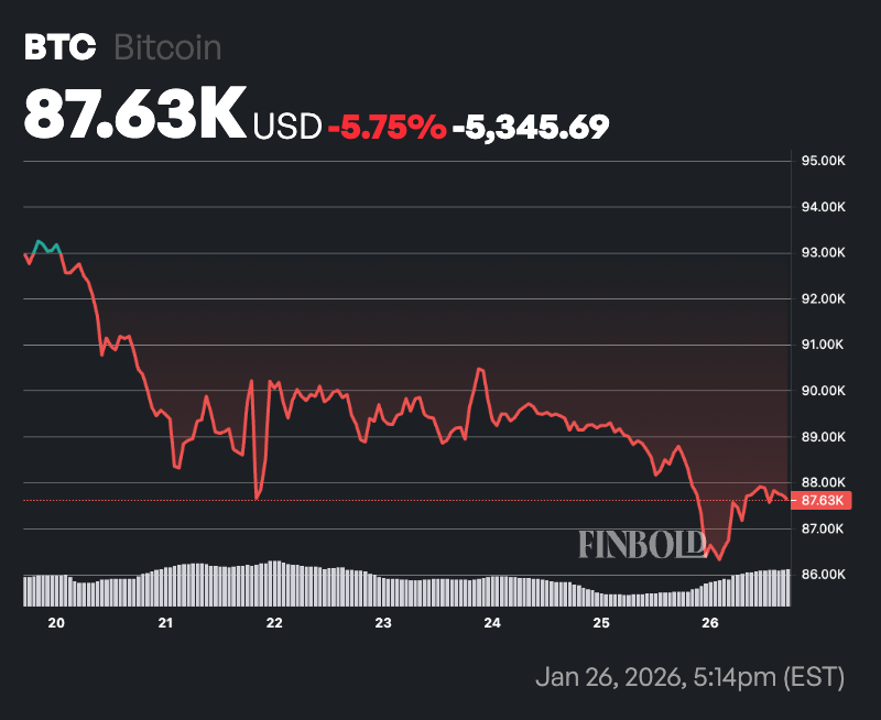 By press time, Bitcoin was trading at $87,623, down more than 1% on the day and nearly 6% on a weekly basis.