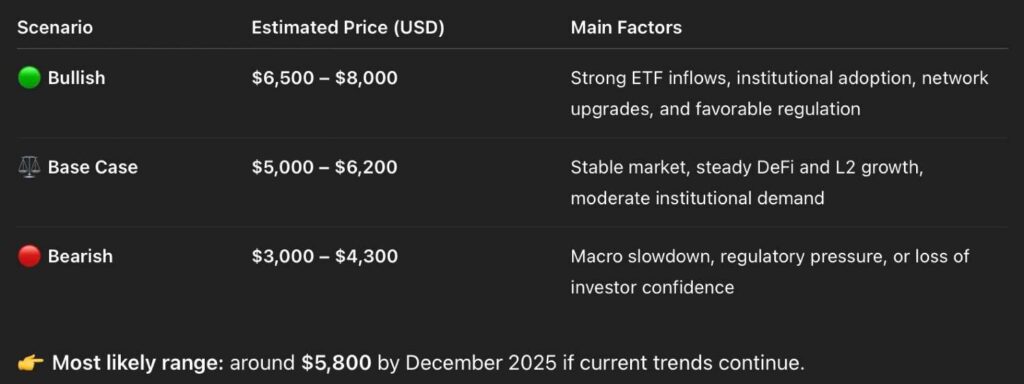 Given the ETH’s recent volatility, Finbold consulted ChatGPT-5, which pointed out several factors that could influence the asset’s momentum in the following months in its Ethereum price prediction for the end of 2025.