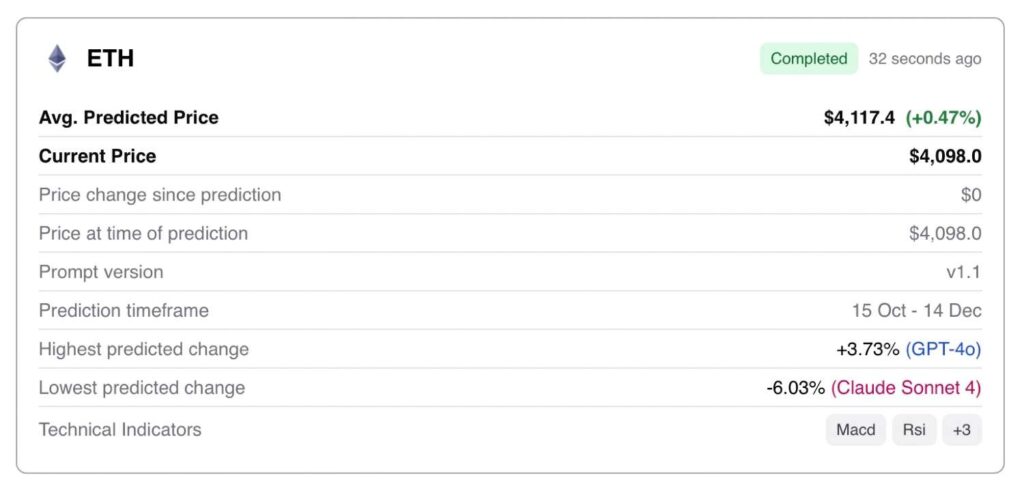 To get a clearer picture of where the second-largest crypto might be around mid-December, Finbold also consulted its own AI Signals machine learning tool, which integrates several large language models (LLMs) with momentum-driven market technical indicators.