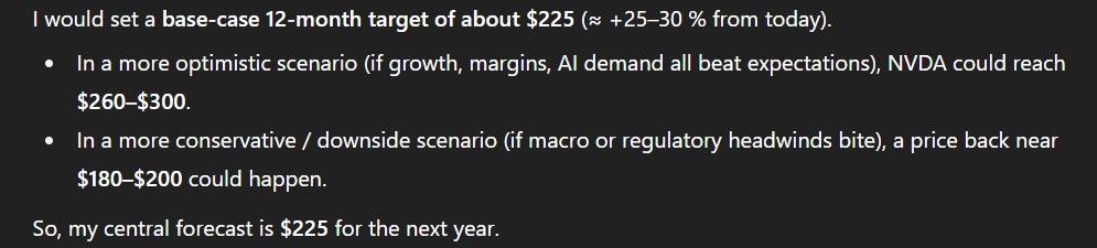 Elsewhere, the average NVDA forecast based on a total of 37 Wall Street ratings collected on the market research platform TipRanks, aligns perfectly with the $225 ChatGPT forecasted.