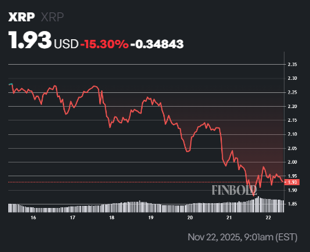 By press time, XRP was trading at $1.93, having corrected by 2.5% in the past 24 hours, while on the weekly timeframe, the token is down over 15%.
