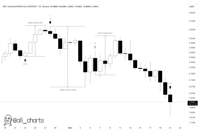 Meanwhile, from a technical perspective, insights by prominent cryptocurrency analyst Ali Martinez in an X post on November 21 suggested that XRP may be gearing up for a short-term rebound after the TD Sequential indicator flashed a buy signal on the daily chart, indicating the recent downtrend could be nearing exhaustion.