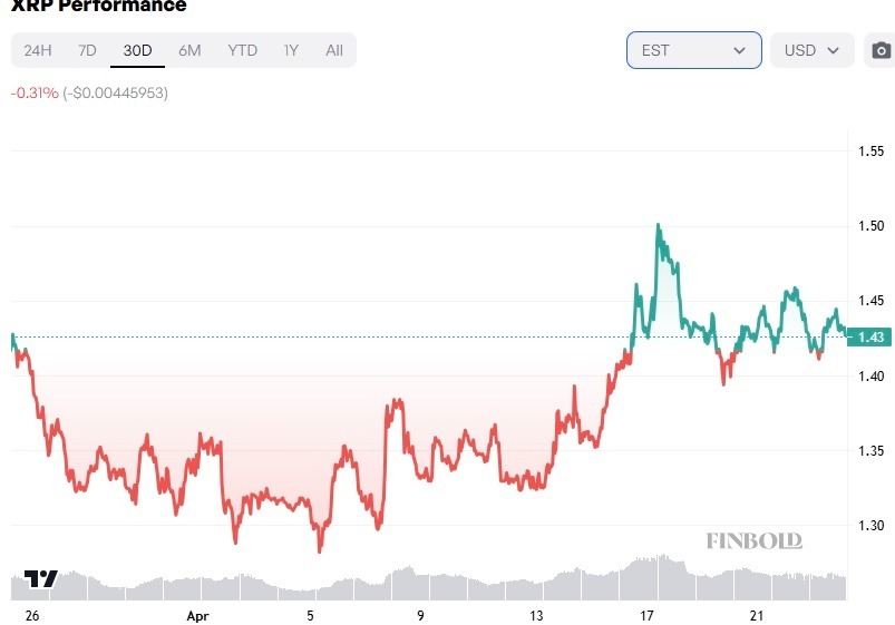 On April 24, Finbold AI Agent predicted that XRP price could hit $1.47 at the beginning of next month. The AI Agent estimates that the token could climb 2.97% on average by Friday next week.