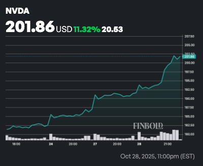 Notably, Nvidia closed the last trading session at new highs around $201, having rallied nearly 50% year-to-date, though markets slightly retraced from the $5 trillion peak, leaving the company valued at about $4.89 trillion.