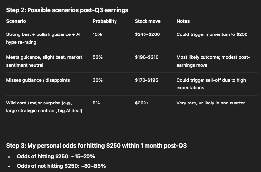 While the probability of a $250 spike is non-negligible, the stock’s trajectory will ultimately depend on the company’s ability to deliver on revenue, guidance, and AI-driven growth initiatives, as well as broader market sentiment in the weeks following the earnings announcement.