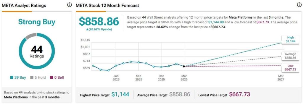 Following Arete’s price cut, the average Meta share price target for the next twelve months has gone down to $858,86, meaning that Wall Street collectively expects the stock to go up around 28% during that period, citing TipRanks data.