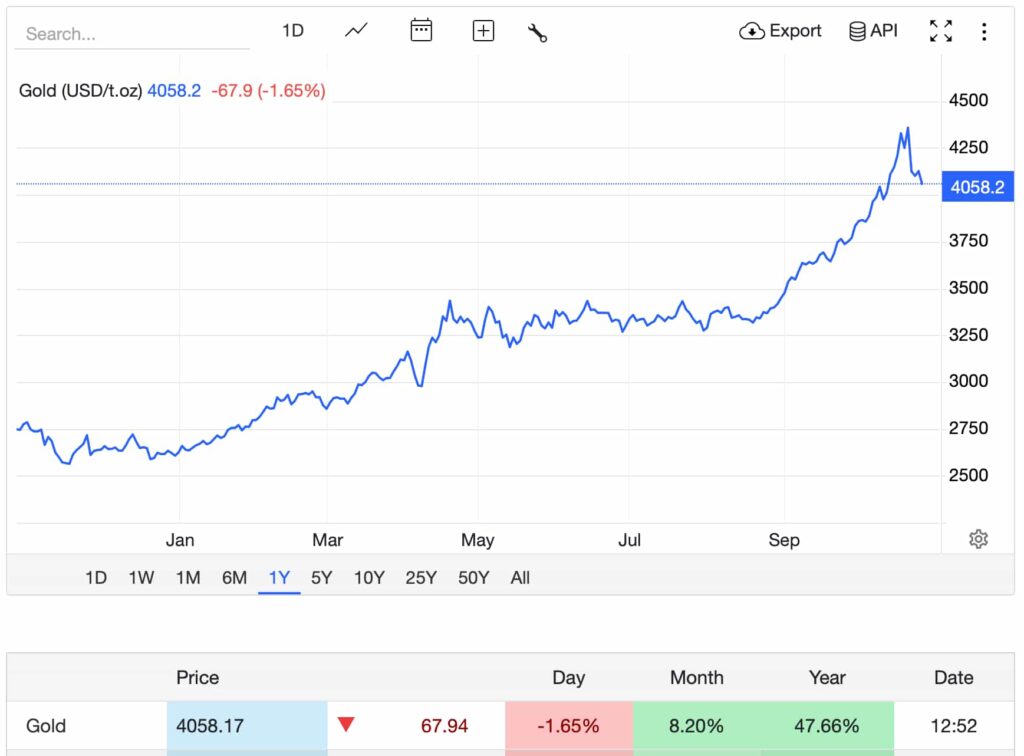 At around $4,058 per ounce on Friday, gold is already up nearly 48% year-to-date, its strongest annual performance since the late 1970s. Prices hit an all-time high of $4,381 earlier this week before slipping as traders locked in gains, but JPMorgan views that pullback as consolidation rather than a shift in the underlying trend.
