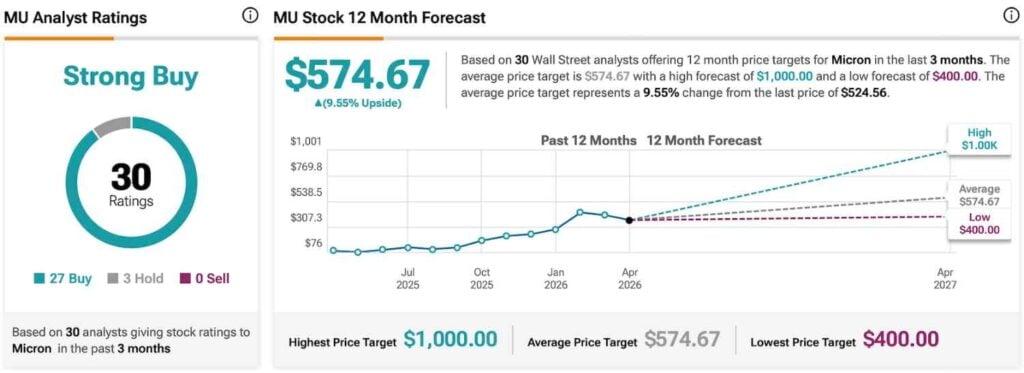 Overall, with 27 ‘Buy,’ three ‘Hold,’ and no ‘Sell’ ratings recorded on the same platform, Micron stock enjoys a ‘Strong Buy’ Wall Street consensus.