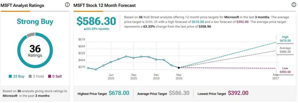 Wall Street’s overall positive outlook is evident in the average MSFT share price target for the next twelve months, which currently sits at $586.30, implying a potential rally of more than 63% according to TipRanks data.