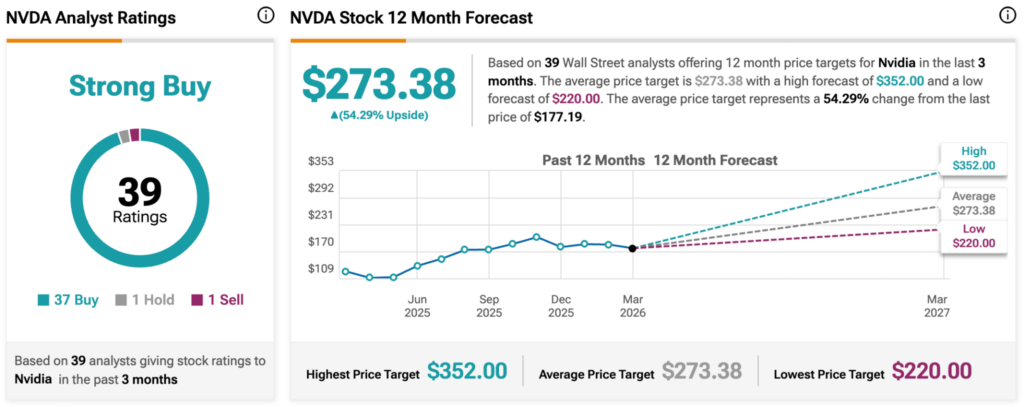 Across Wall Street over at TipRanks, Nvidia holds a ‘Strong Buy’ consensus based on 39 analyst ratings: 37 recommend buying, one suggests holding, and one advises selling.