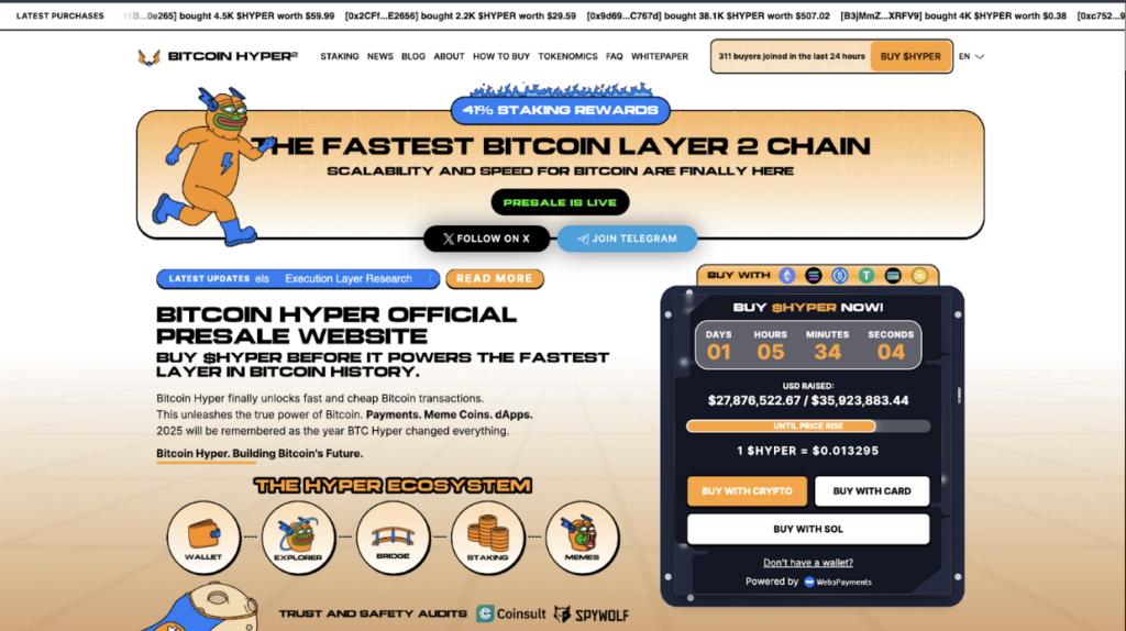 The token trades around $0.013, with more than $27.8 million raised so far. Recent whale activity, including single buys over $500,000, shows clear confidence from large crypto investors. If this model gains enough traction, Bitcoin Hyper could become a key low gas fee crypto solution in the next crypto bull run.