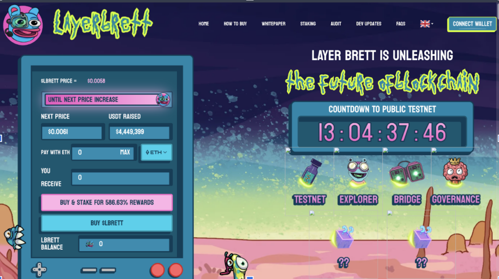 Layer Brett (LBRETT) mixes meme culture with Ethereum Layer 2 infrastructure. It started from the Brett community on Base but now aims to become a full Layer 2 chain with a strong focus on community apps, gaming, and dApps. The presale has raised about $4.44 million so far, with the token price moving from $0.004 to $0.0061.