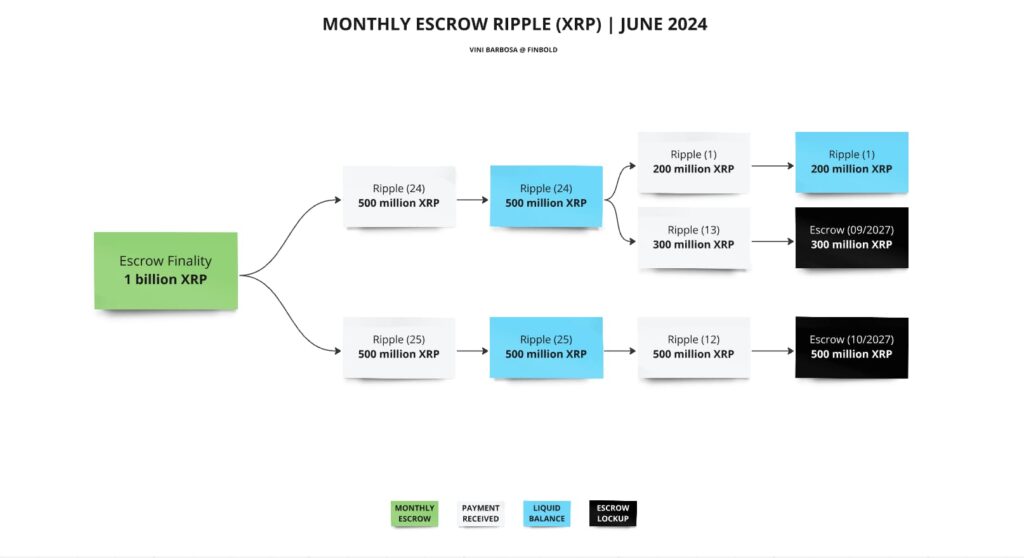 In particular, Ripple (24) will unlock 500 million XRP in two escrows of 100 million and 400 million tokens, while Ripple (25) will unlock a single escrow of 500 million tokens on July 1.