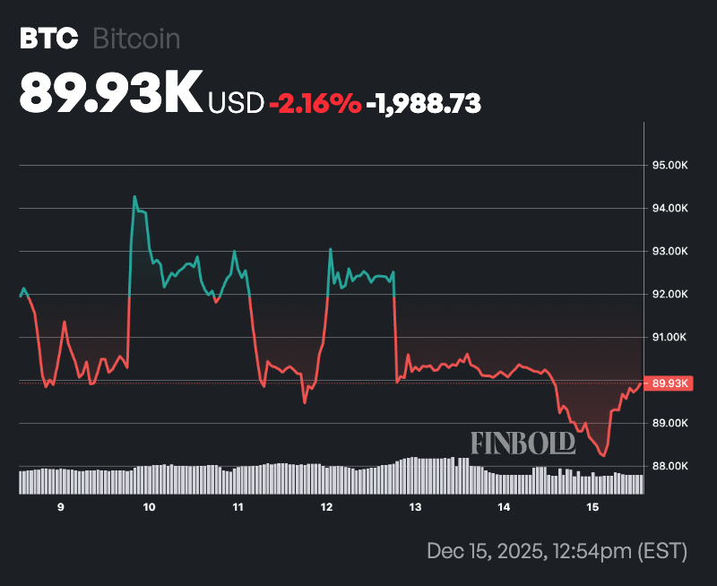 Meanwhile, Bitcoin continues to show waning momentum after losing the $90,000 support zone. At press time, the asset was trading at $89,930, down about 0.1% over the past 24 hours. On a weekly basis, BTC is down more than 2%.
