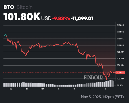 By press time, Bitcoin was trading at $101,850, down almost 2% in the past 24 hours and 10% lower on the week.