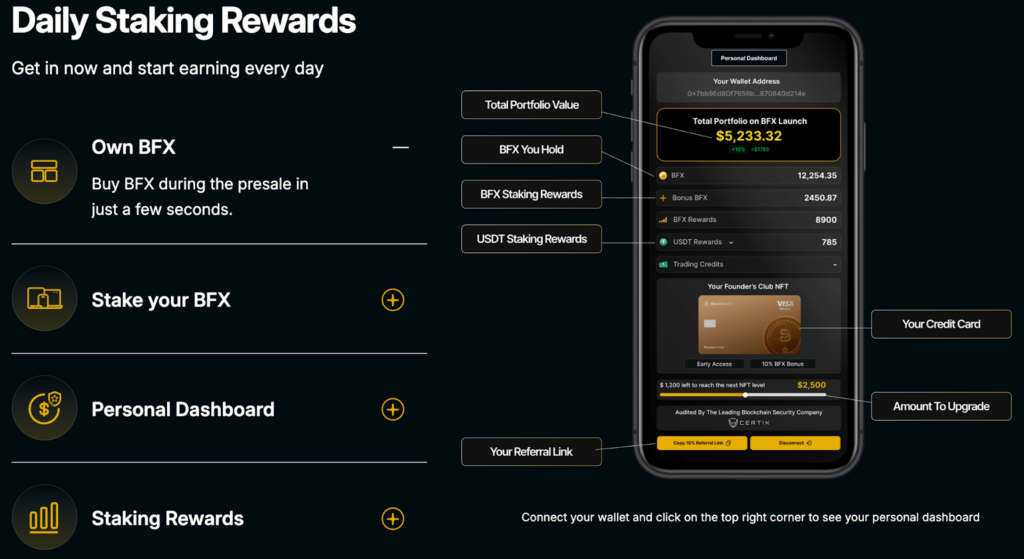 Use the EXTRA30 bonus code to get an extra 30% worth of $BFX tokens on top of your purchase. It’s a special offer for people who support the project early on, so they can get more value while making sure they get a place in the BlockchainFX pre-sale.
