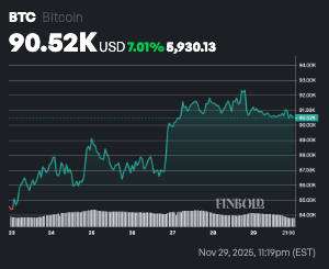 By press time, Bitcoin was trading at $90,520, down about 0.5% in the past 24 hours, while gaining over 7% on the weekly timeframe.