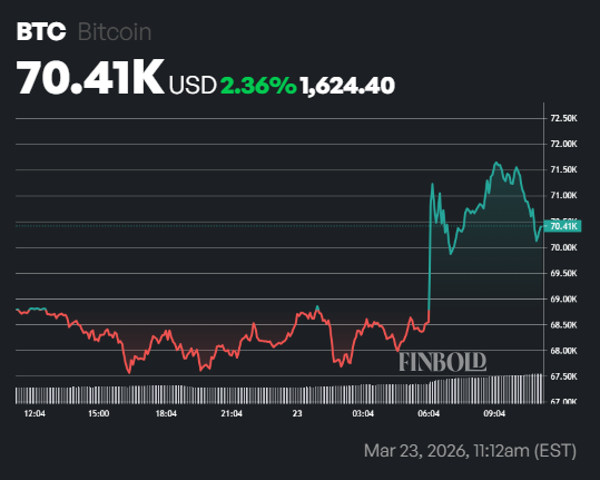 The significant cash outflow from BlackRock’s IBIT and ETHA coincided with a sudden market rebound today. Bitcoin price gained over 2.36% during the past 24 hours to trade at around $70,410 at the time of this publication.