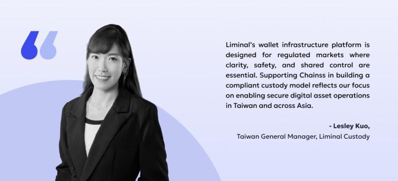“We are pleased to support Chainss as they move towards a fully compliant and secure custody model in Taiwan. Our wallet infrastructure platform is designed for regulated markets where clarity, safety, and shared control are essential. Chainss is taking the right step for its users and for the wider ecosystem in Taiwan,” commented Lesley Kuo, Liminal Custody Taiwan General Manager.