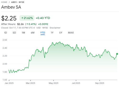 Ambev (NYSE: ABEV) , the Latin American brewing giant behind popular beer brands such as Skol, has emerged as a defensive favorite in a volatile global economy.