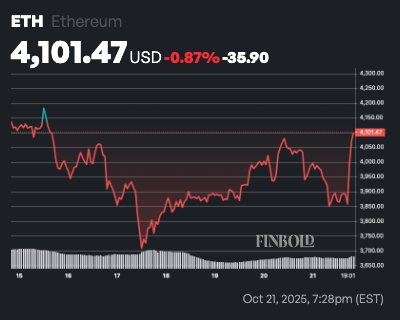By press time, Ethereum was trading at $4,103, up almost 4% in the past 24 hours, though still down about 1% on the weekly chart.