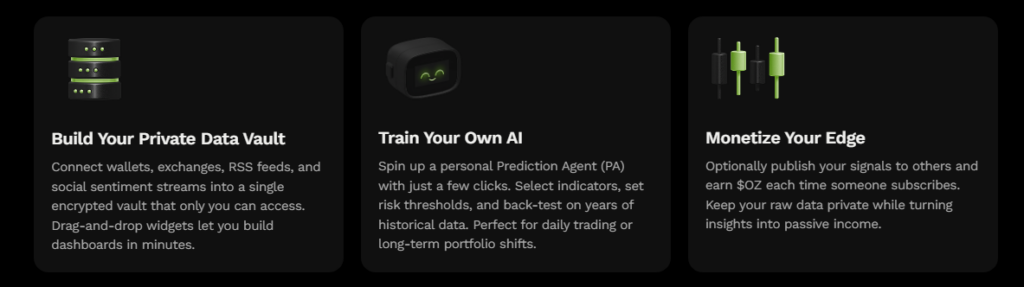 Ozak AI is a blockchain-based crypto project that provides a technology platform that specializes in predictive AI and advanced data analytics for financial markets. Through machine learning algorithms and decentralized network technologies, Ozak AI enables real-time, accurate, and actionable insights to help crypto enthusiasts and businesses make the correct decisions.