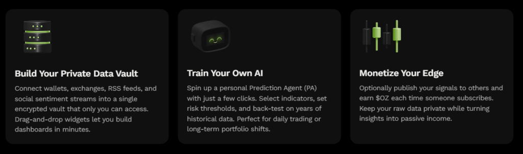 At its core, Ozak AI represents the perfect blend of artificial intelligence and blockchain automation. The project is developing a network of AI Prediction Agents — self-learning, autonomous systems capable of analyzing blockchain data, predicting trends, and executing smart, automated actions in real time. These AI-driven systems can enhance everything from DeFi performance to trading strategies, giving users intelligent tools for faster, data-backed decisions.