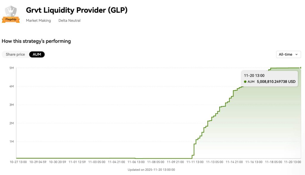 GLP also illustrates how quickly some strategies can attract capital. Indeed, shortly after launch, its $5 million cap filled within a few days. In a post about the rollout, Grvt’s CEO noted early performance metrics and said the team is considering raising the cap due to demand.
