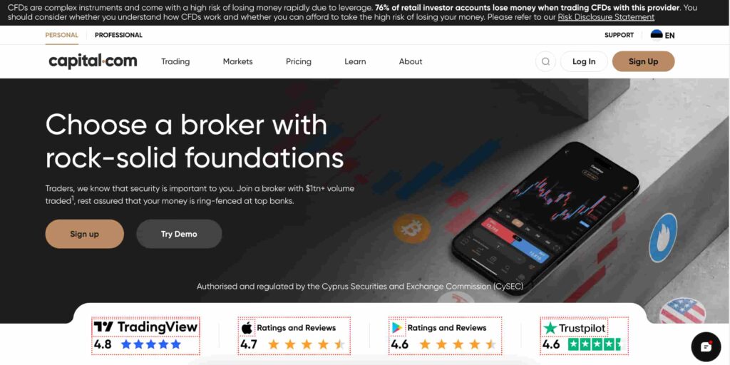Capital.com is an online broker for CFD (contracts for difference) trading.