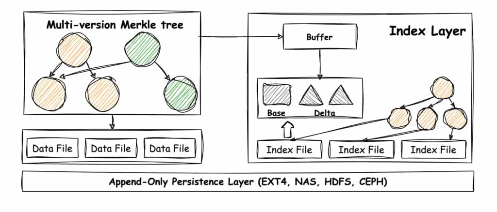 The system also uses version-based indexing and efficient logging to reduce disk usage and improve storage efficiency. This design helps ensure that storage performance keeps pace with execution, rather than becoming a bottleneck as the network scales.