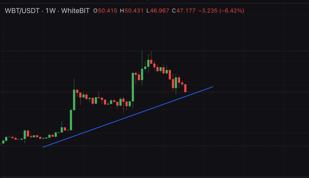 Most coins have not been able to recover because they don’t have enough real-world use to keep people buying. However, WhiteBIT Coin (WBT) has managed to find a solid floor. While other coins keep falling, WBT has stayed steady around $47.