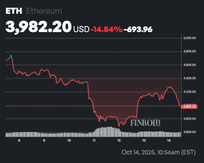 Meanwhile, as of press time, Ethereum was trading at $3,982, having plunged over 4% in the past 24 hours, while on the weekly timeframe, the second-ranked crypto by market cap remains down almost 15%.
