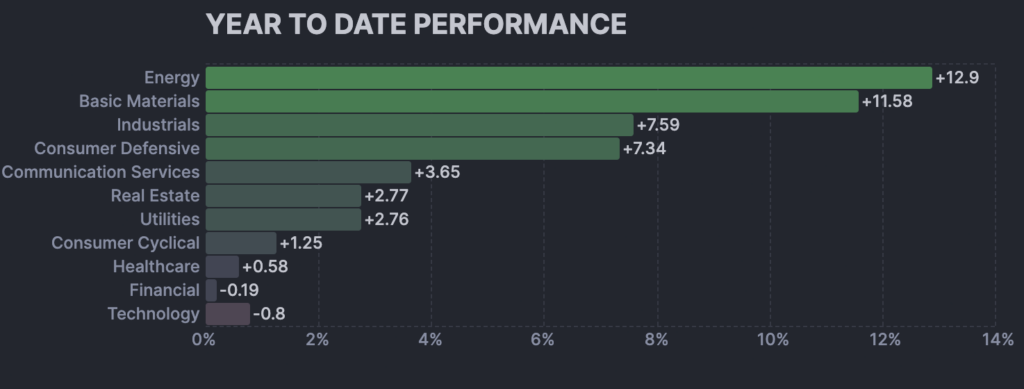 Other sectors have shown mixed results early in the year. In this line, basic materials have followed closely with an 11.58% rise, supported by industrial recovery. Industrials gained 7.59%, while consumer defensive stocks advanced 7.34%.