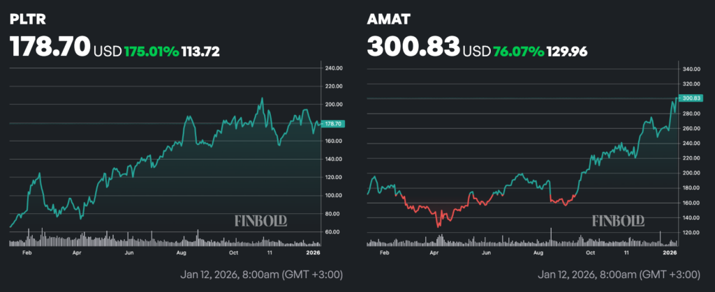 Meanwhile, Applied Materials ended 2024 at $162.63 and rose to approximately $301 by January 9, 2026, representing an increase of roughly 85%. It then grew to approximately $925.