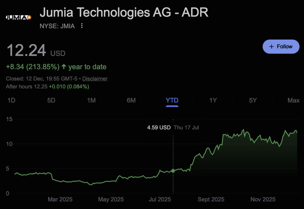 Investors are increasingly focused on its logistics network as a long-term asset as digital commerce penetration across Africa continues to rise. Meanwhile, JMIA shares have had an impressive run in 2025, closing Friday at $12.24, reflecting a gain of about 215%.