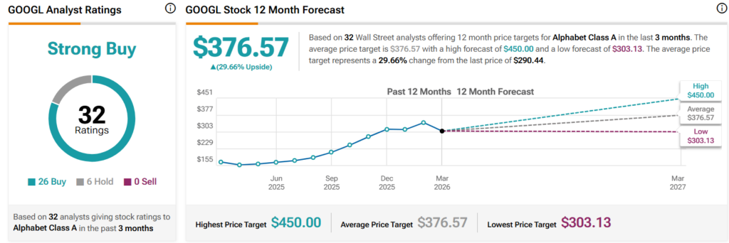 To begin with, GOOGL stock’s 2026 decline that sent the equity 8.28% into the red year-to-date (YTD) has done little to crack Wall Street’s bullishness.