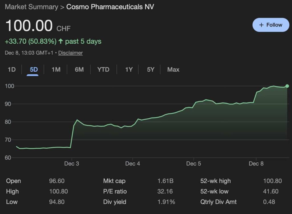 Cosmo Pharmaceuticals rallies, eyes a $20 billion market