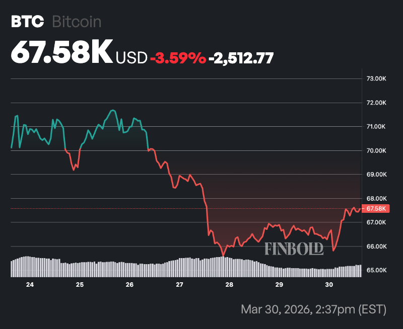 By press time, Bitcoin was trading at $67,567, up about 1.1% in the past 24 hours. On the weekly timeframe, BTC is down roughly 3.5%.