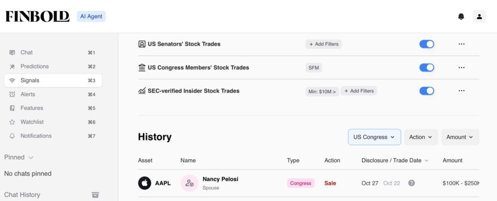 Stay up-to-date on the trading activity of US Congress members. The signal triggers based on updates from the House disclosure reports, notifying you of their latest stock transactions.