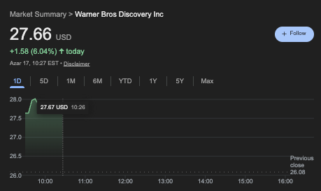 Amid these developments, WBD stock is recording increased investor interest, trading at $27 as of press time, up over 6% for the day.