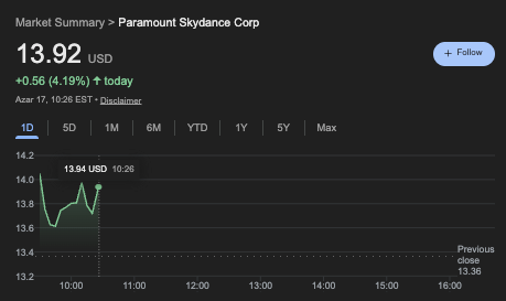 As of press time, Paramount was up 4%, trading at $13.