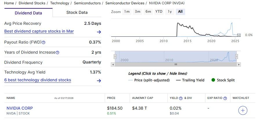 From a trading perspective, Nvidia’s shares typically recover within about 2.5 days following the ex-dividend date, offering limited appeal for short-term dividend capture strategies.