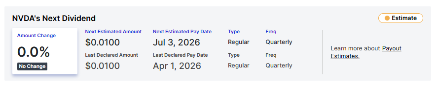 Accordingly, investors who own 100 NVDA shares will receive precisely $1 in dividends this quarter.