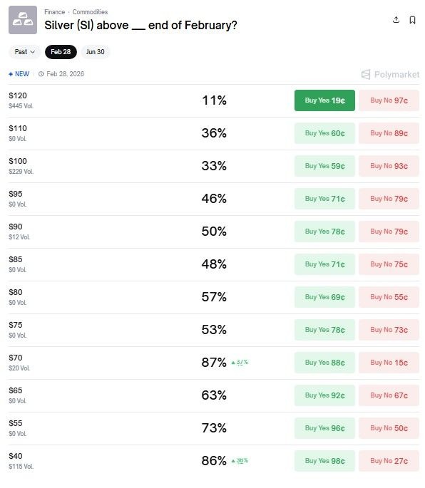 After swinging from $72 to above $116 in a matter of weeks, silver is now back trading around $85, and traders on cryptocurrency-based prediction market Polymarket are betting on where the precious metal heads next.